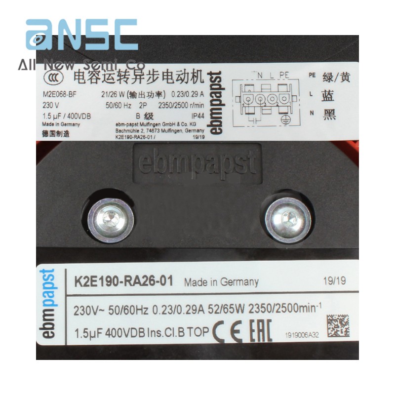图片仅供参考Original Centrifugal fan K2E190-RA26-01 230V 0.23A 52/65W 190MM 2350/2500RPM Turbine centrifugal fan