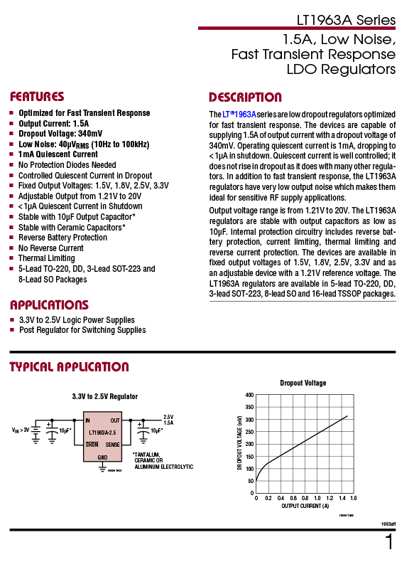 LT1963AEST-3.3#PBF Linear Voltage Regulators applications.