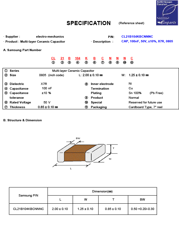 | ANSC PART# | ANSC - CL21B104KBCNNNC |