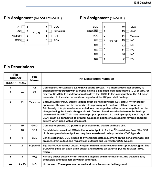 16-SOIC (0.295, 7.50mm Width) package 1339AC-31SRGI Applications 1339AC-31SRGI Real Time Clocks applications. Digital still camera Digital video camera Printers Copy machines Mobile equipment Battery powered devices Printers and copiers Electronic metering Digital cameras White goods |