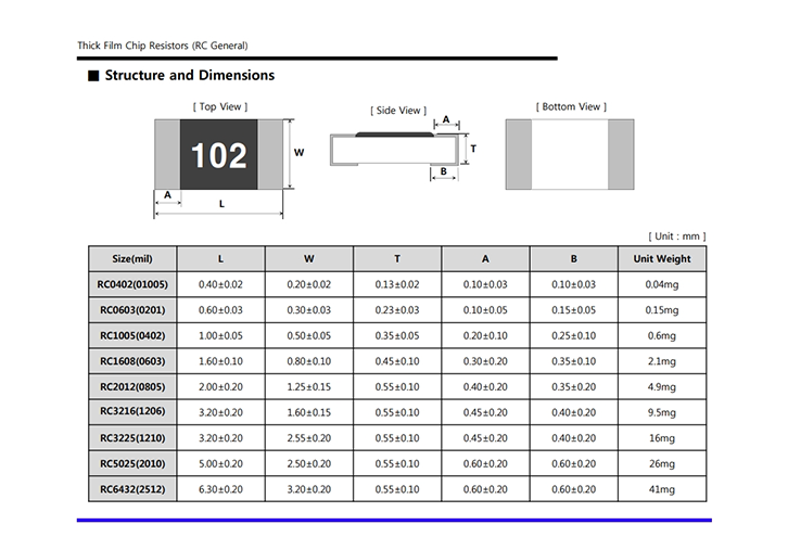 | Size / Dimension | 0.039" L x 0.020" W (1.00mm x 0.50mm) |