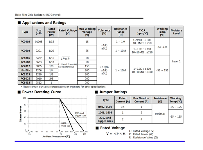 | Power (Watts) | 0.063W, 1/16W |