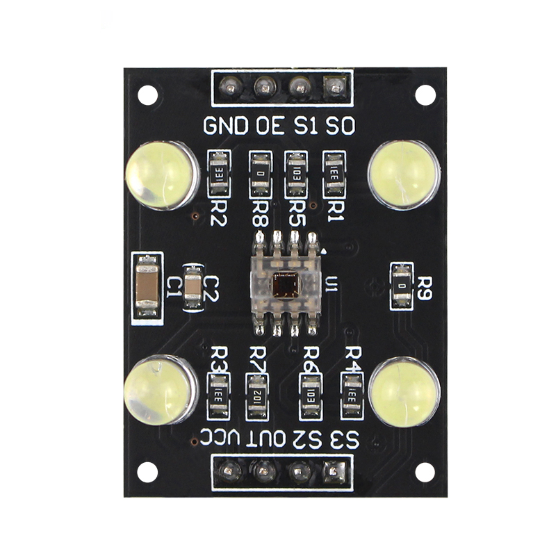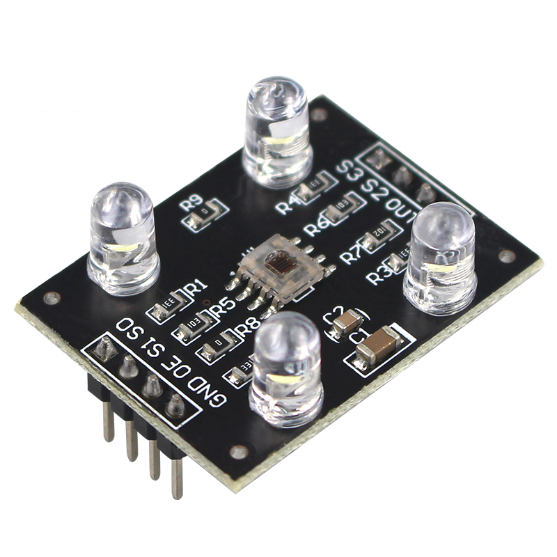TCS230 adopts an 8-pin SOIC surface mount package, which integrates 64 photodiodes on a single chip. These diodes are divided into four types. Among them, 16 photodiodes are equipped with red filters; 16 photodiodes with green filters; 16 photodiodes with blue filters; The remaining 16 do not have any filters and can transmit all optical information. These photodiodes are arranged in a cross pattern within the chip, which can greatly reduce the unevenness of incident light radiation and increase the accuracy of color recognition; On the other hand, 16 photodiodes of the same color are connected in parallel and evenly distributed in the diode array, which can eliminate color position errors. During operation, dynamically select the required filter through two programmable pins. The typical output frequency range of this sensor is from 2 Hz to 500 kHz, and users can also choose between 20% or 2% output scaling factor or power off mode through two programmable pins. The output scaling factor enables the sensor's output to adapt to different measurement ranges, improving its adaptability. For example, when using a low-speed frequency counter, a small calibration value can be selected to match the output frequency of TCS230 with the counter.