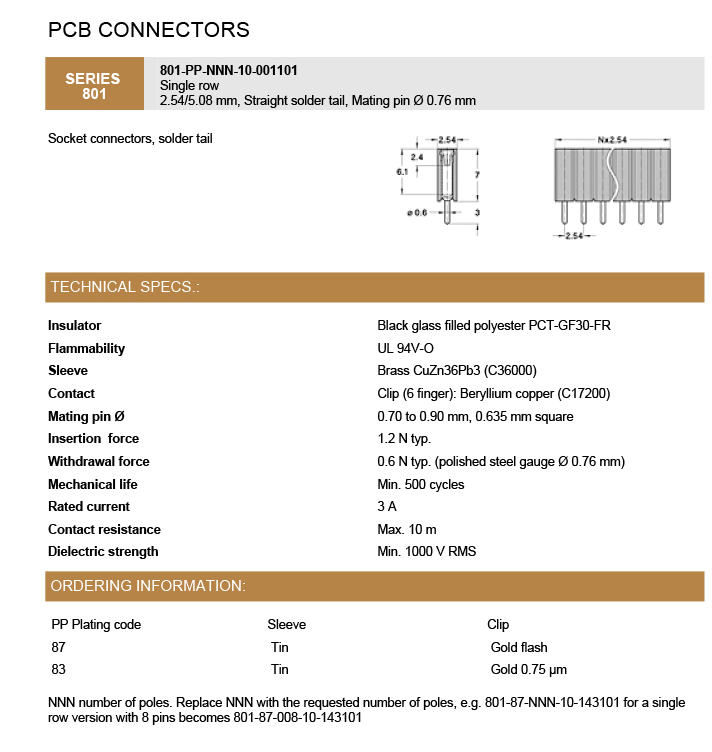 Product Overview Currently, it is packaged in Socket.The mounting type of the device is Through Hole.A Bulk case is used to package the product.A product of the 801 Series, it belongs to the range of products of that series.Through Hole represents the mounting point for the part.-55°C~125°C Operating Temperature is the default operating temperature for the device. Product Features 801 series Product Applications 801-87-050-10-001101 Rectangular Connectors applications. · Embedded systems · Datacom · Communication · Medical technology · Military Technology · Measuring & Control Technology · Instrumentation · Automotive Electronics · Telecommunications · Data Technology |