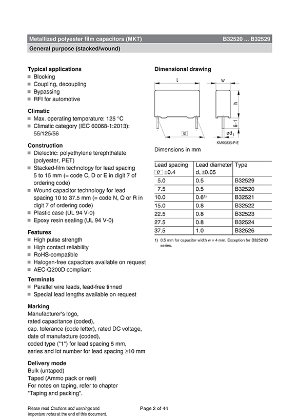 | Dielectric Material | Polyester, Polyethylene Terephthalate (PET), Metallized - Stacked |