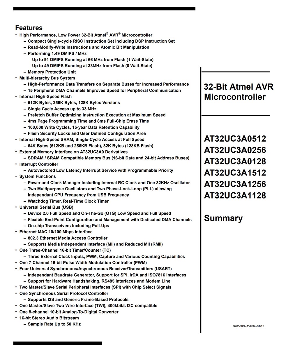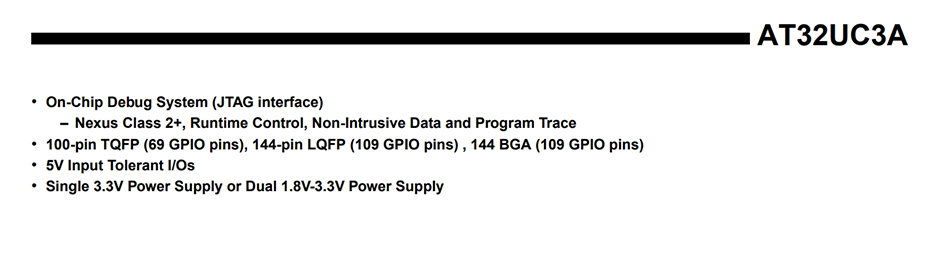 An electrical component of this type belongs to the AVR®32 UC3 A0 series.