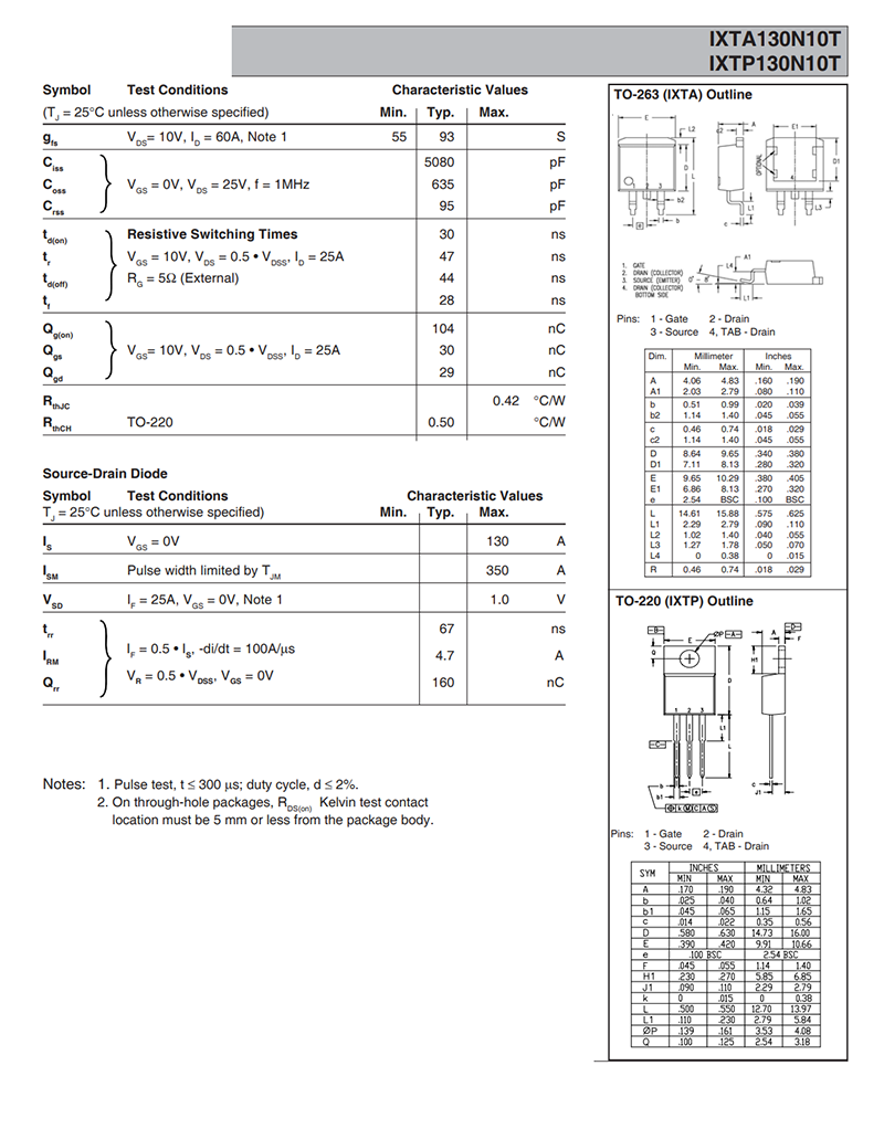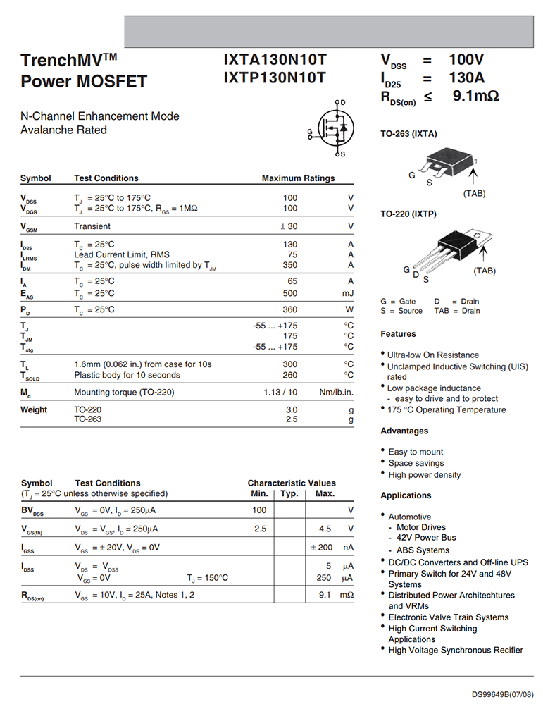 | Current - Continuous Drain (Id) @ 25°C | 130A (Tc) |