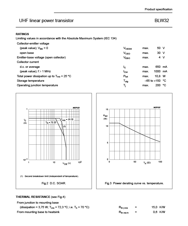 The excellent d.c. dissipation properties for class-A operation are obtained by means of diffused emitter ballasting resistors and a multi-base structure, providing an optimum temperature profile on the crystal area. The combination of optimum thermal design and the application of gold sandwich metallization realizes excellent reliability properties.
