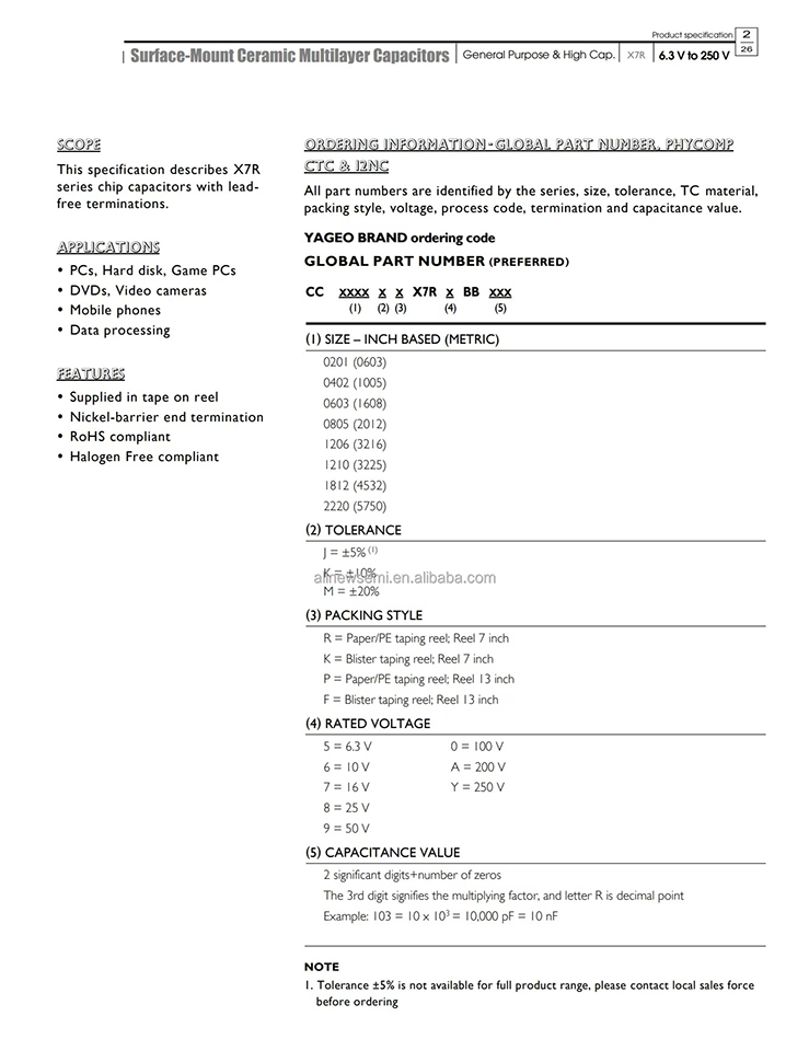 Positive tolerance is present at 10% for this part.Temperature coefficient of resistance refers to the change in electrical resistance of a substance per degree change in temperature, with X7R being the highest temperature coefficient.The unit can operate at 50V Volts DC - Rated DC.