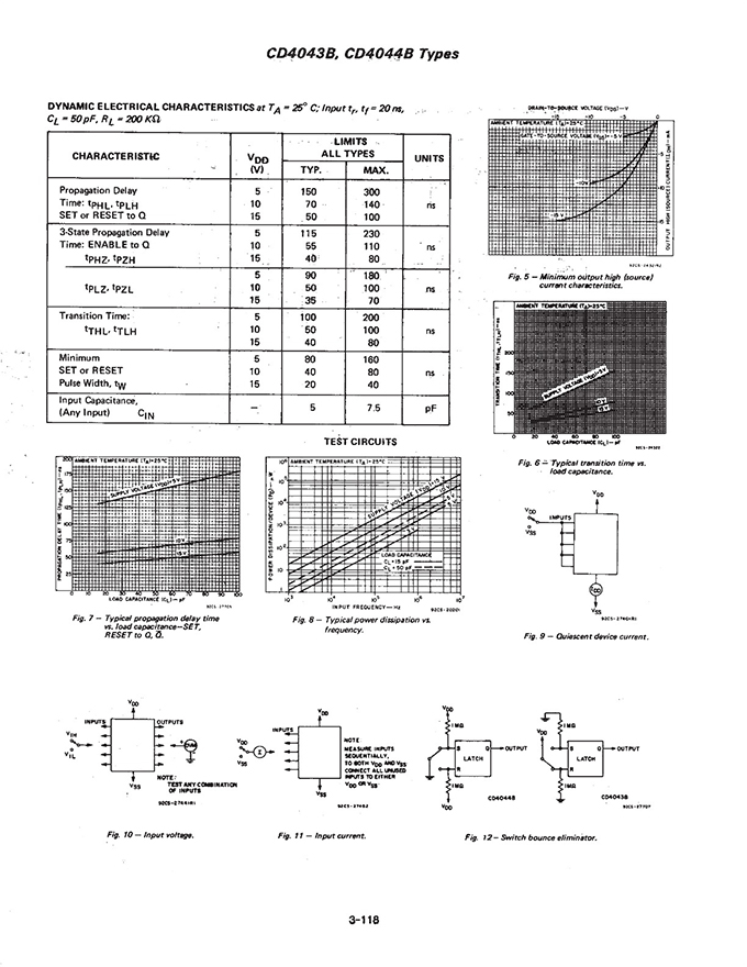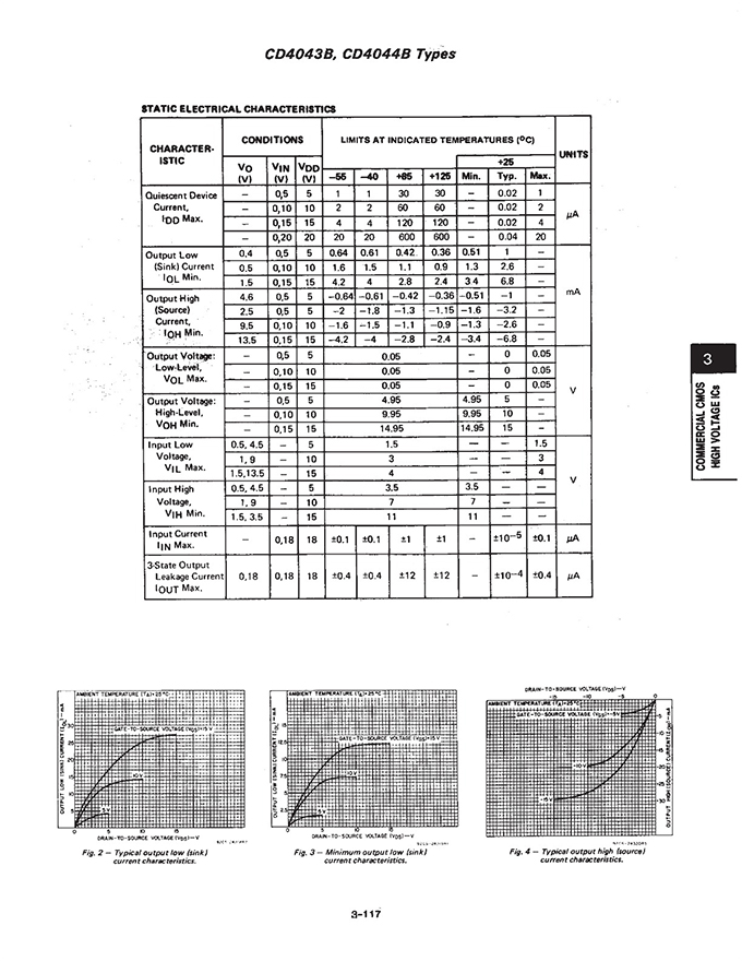 | General Description The CD4043BC are quad cross-couple 3-STATE CMOS NOR latches, and the CD4044BC are quad cross-couple 3-STATE CMOS NAND latches. Each latch has a separate Q output and individual SET and RESET inputs. There is a common 3-STATE ENABLE input for all four latches. A logic “1” on the ENABLE input connects the latch states to the Q outputs. A logic “0” on the ENABLE input disconnects the latch states from the Q outputs resulting in an open circuit condition on the Q output. The 3-STATE feature allows common bussing of the outputs. Features ■ Wide supply voltage range: 3V to 15V ■ Low power: 100 nW (typ.) ■ High noise immunity: 0.45 VDD (typ.) ■ Separate SET and RESET inputs for each latch ■ NOR and NAND configuration ■ 3-STATE output with common output enable Applications • Multiple bus storage • Strobed register • Four bits of independent storage with output enable • General digital logic |